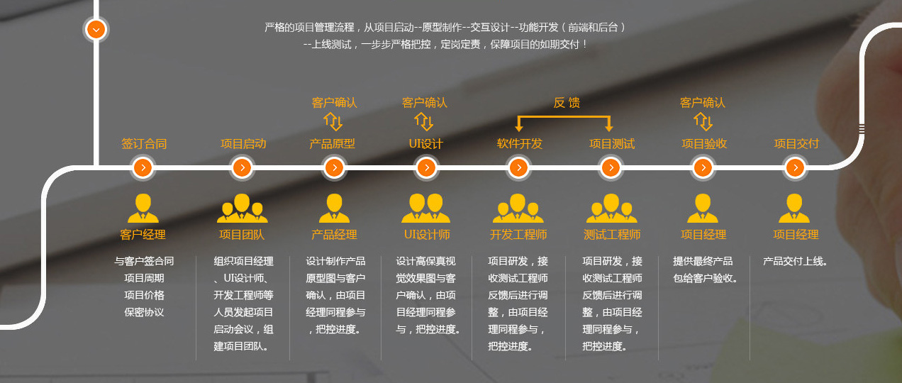 強(qiáng)大的設(shè)計及技術(shù)團(tuán)隊 · 擁有成功的合作經(jīng)驗 · 標(biāo)準(zhǔn)化作業(yè)體系 · 一對一百分百服務(wù) · 獨(dú)享的顧問式貼身服務(wù)